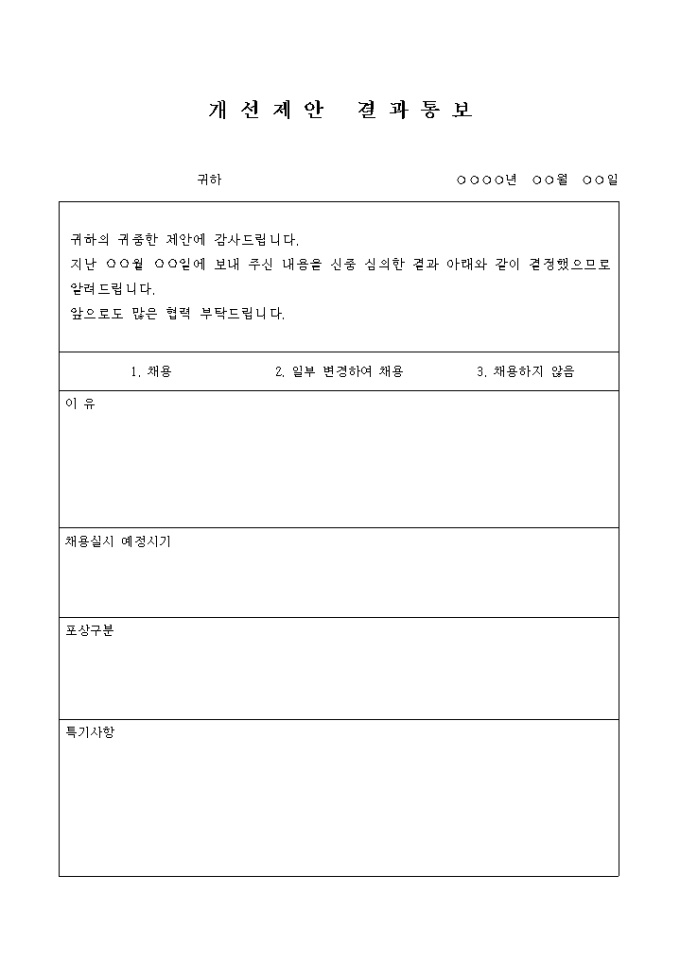 9,000원/월개선제안에 대한 결과를 통보하는 개선제안 결과통보 양식입니다