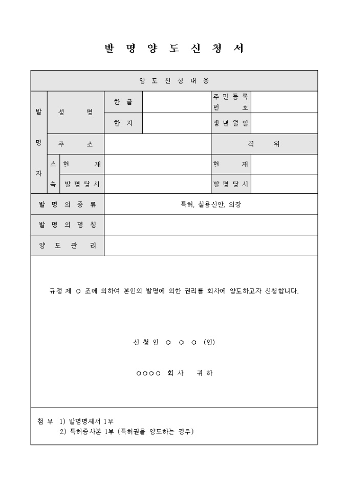 9,000원/월발명한 권리를 회사에 양도하고자 할 때 작성하여 신청하는 발명 양도 신청서 양식입니다