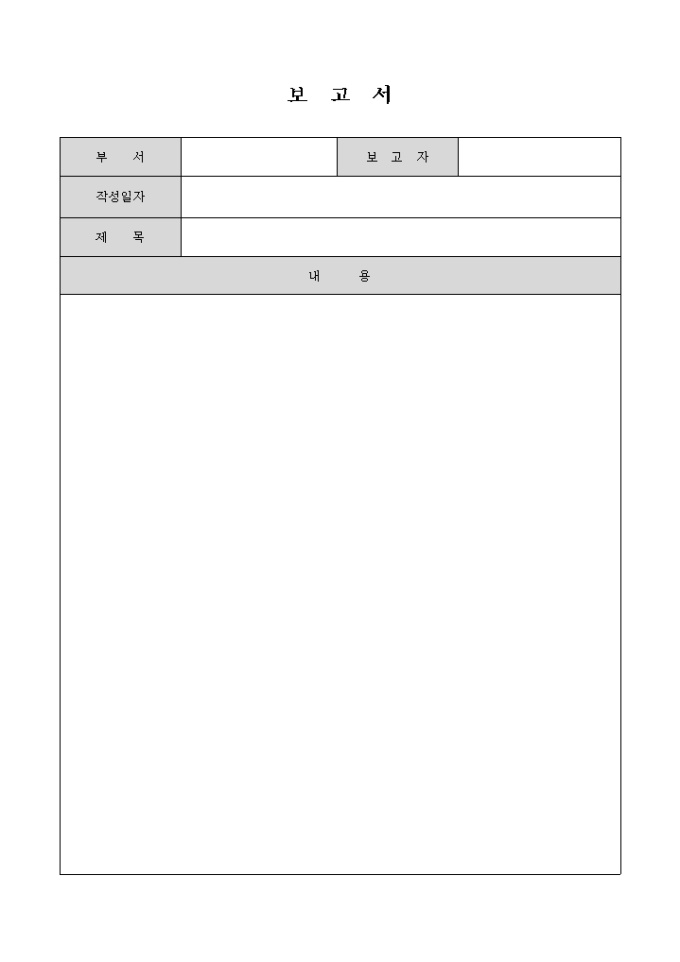 9,000원/월부서, 보고자, 제목, 내용 등으로 구성된 보고서 양식입니다.