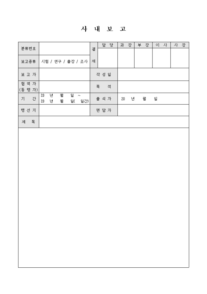 9,000원/월분류번호, 결재, 대리, 과장, 차장, 목적, 면담자, 작성일, 행선지 등으로 구성된 사내보고서입니다.
