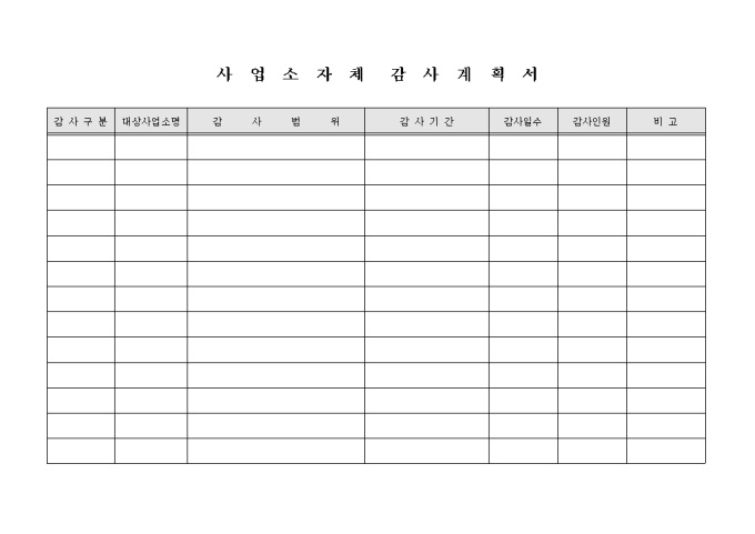 9,000원/월사업소별 감사범위, 감사기간, 감사일수, 감사인원 등으로 구성된 사업소 자체감사 계획서입니다.