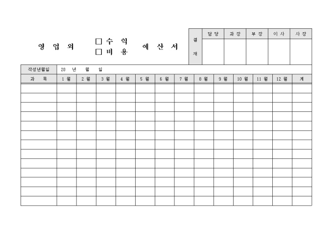 9,000원/월월별, 과목별로 구성된 영업외수익비용예산서입니다.