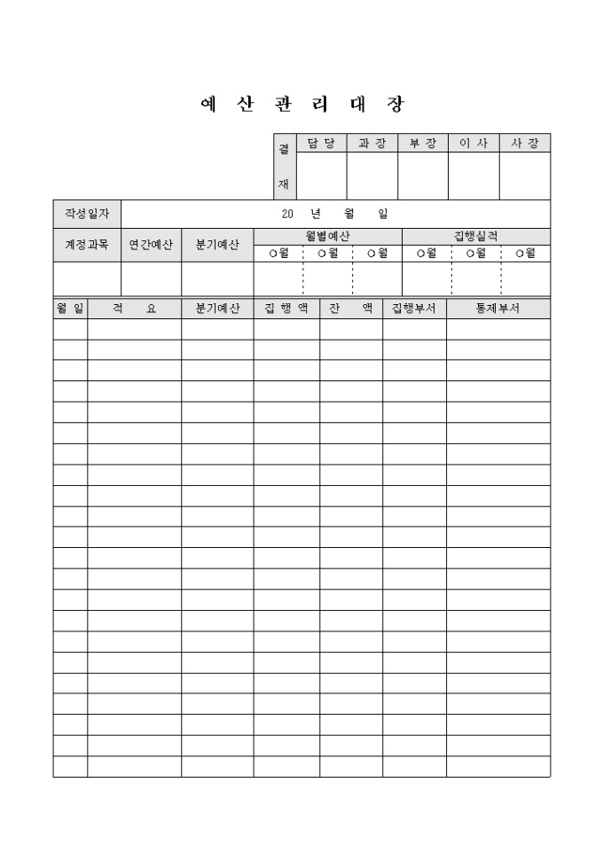 9,000원/월예산과목별 분기예산, 집행액, 잔액,집행부서, 통제부서 등으로 구성된 예산관리대장입니다.