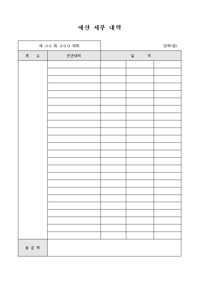 9,000원/월전년도 대비 예산 세부내역을 기록하는 서식입니다.