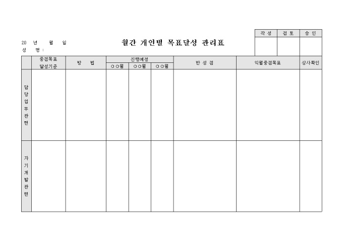 월간개인별목표달성관리표