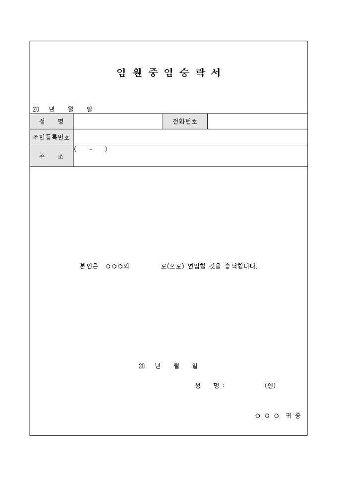 임원중임승락서
