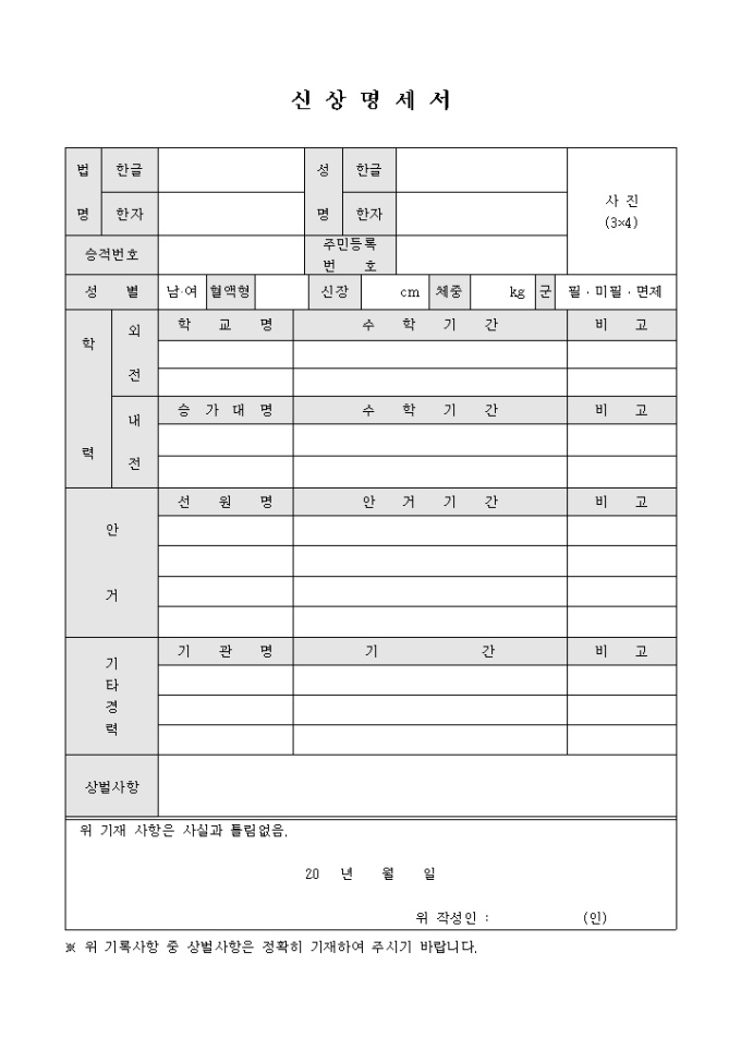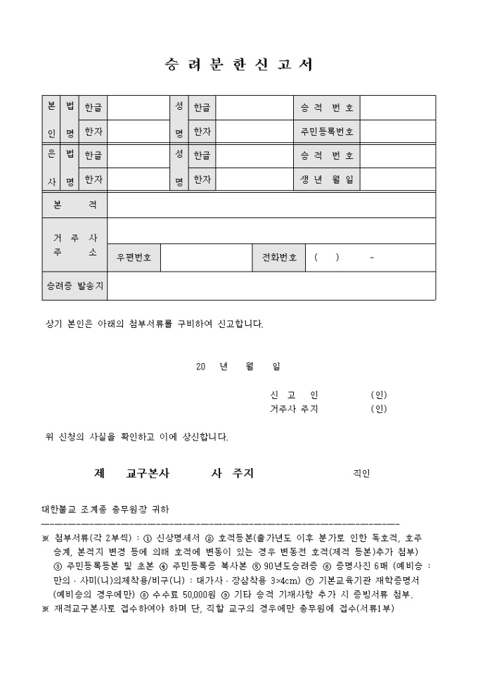 승려분한신고서(신상명세서포함)