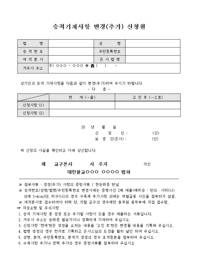 승적기재사항변경추가신청원불교