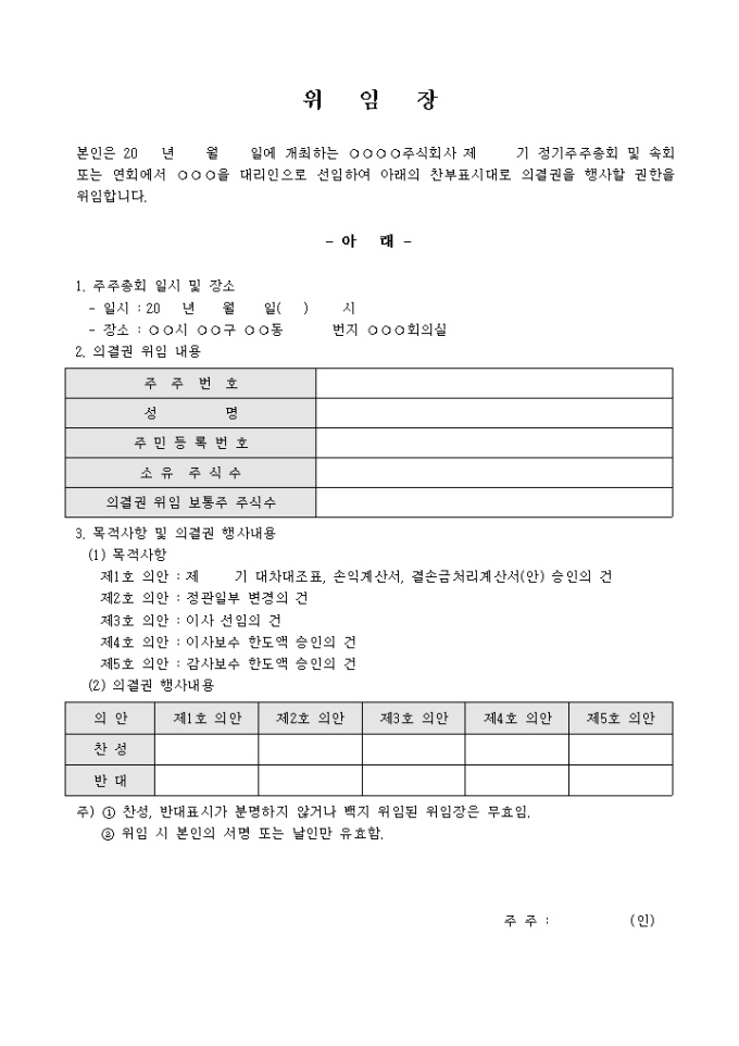 9,000원/월위임장손익계산서정관변경이사선임이사감사보수한도액승인