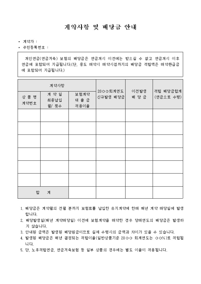 배당급안내(계약사항포함)