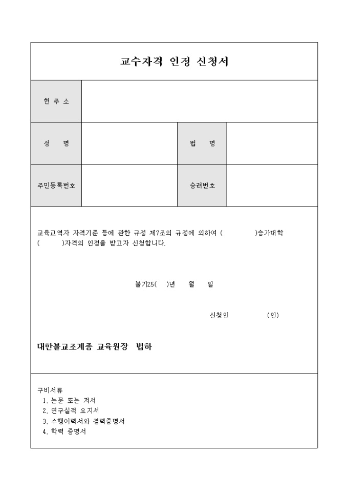 9,000원/월교수로써 자격을 인정받기 위해 사용하는 인정 신청서 입니다. 교수자격 인정