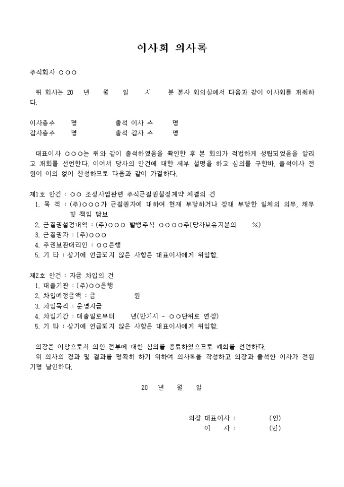 9,000원/월단기차입금 증가결정에 관한 이사회의 의사록입니다.