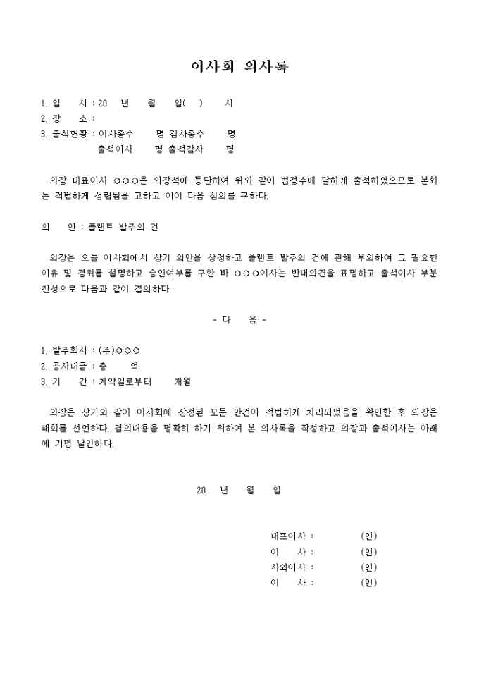 9,000원/월신규시설투자에 관한 이사회 의사록입니다.