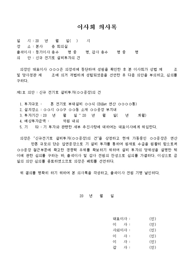 이사회의사록(신규전기설비투자)