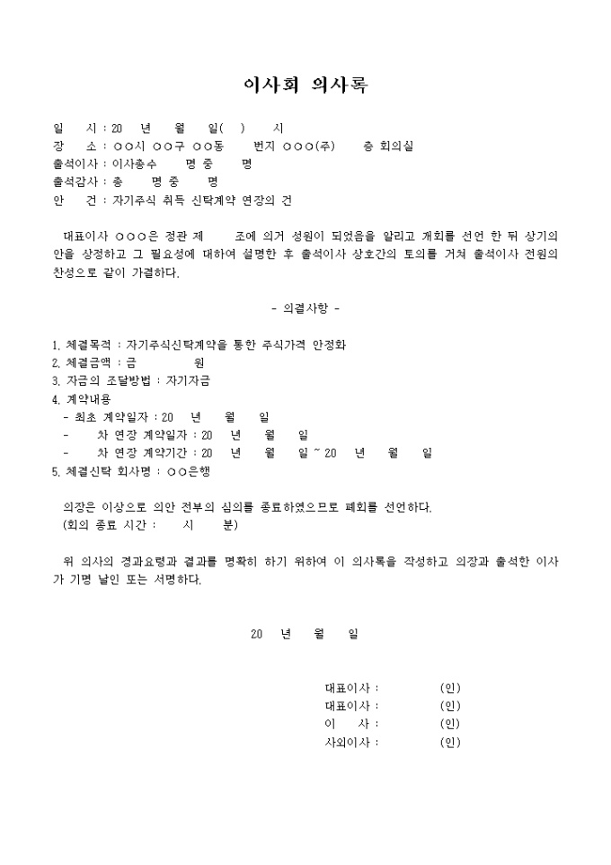9,000원/월자기주식 취득 신탁계약 연장에 관한 이사회 의사록입니다.