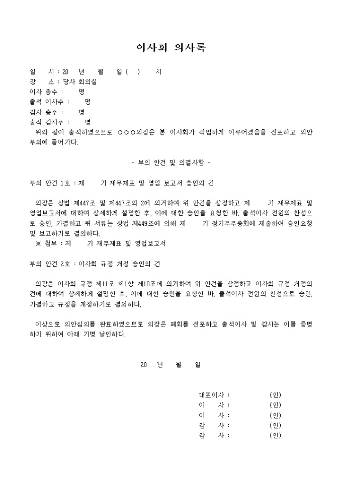 9,000원/월영업 보고 규정개정에 관한 이사회 의사록입니다.