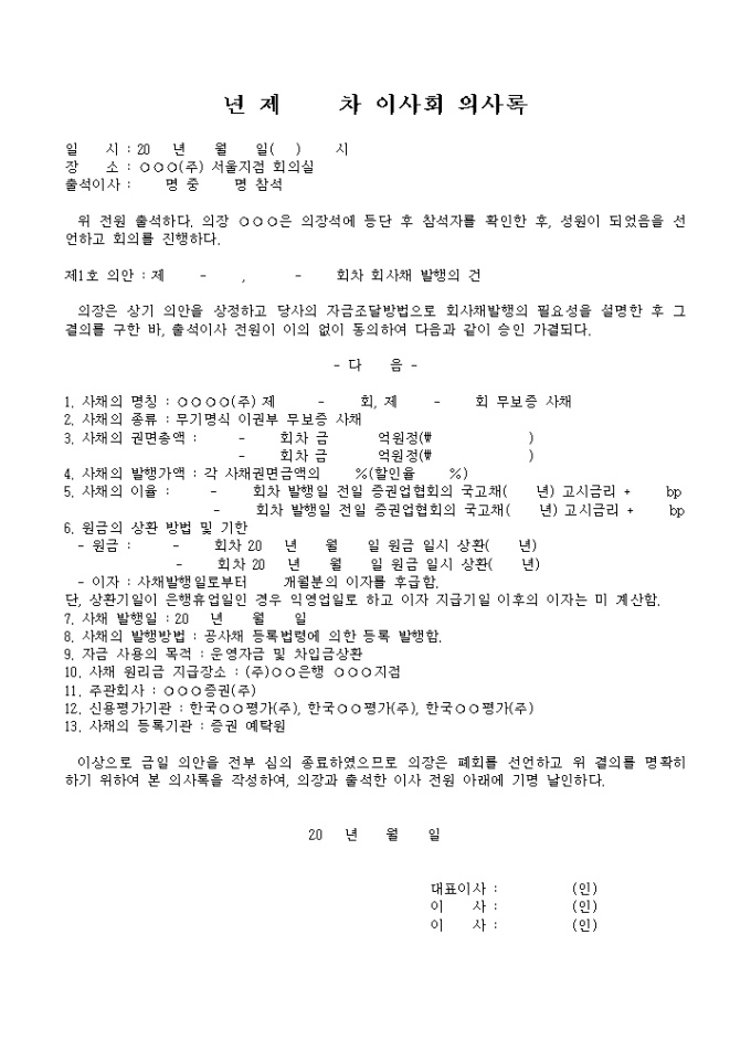 9,000원/월유가증권신고서회사채발행에 관한 이사회 의사록입니다.