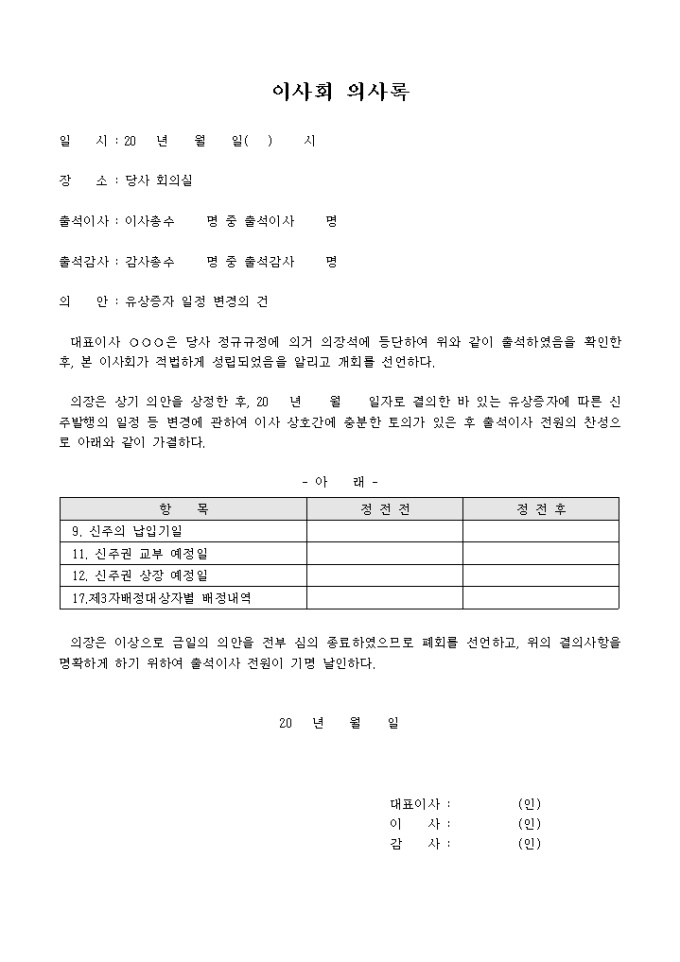9,000원/월유상증자 결정 신주권에 관한 이사회 의사록입니다.