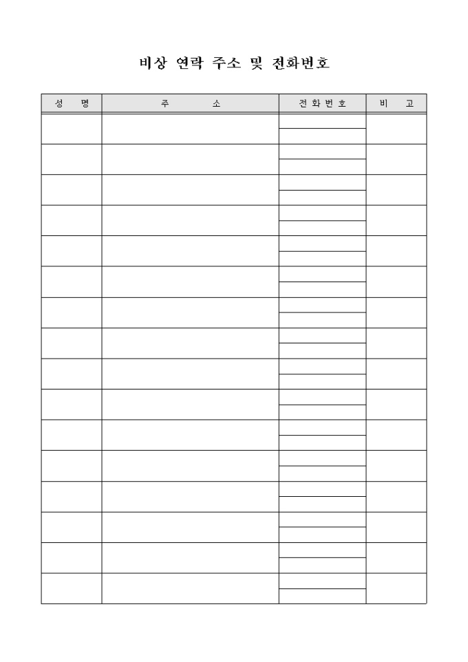 9,000원/월비상연락망 양식으로 성명, 주소, 전화번호를 기재할 수 있습니다.