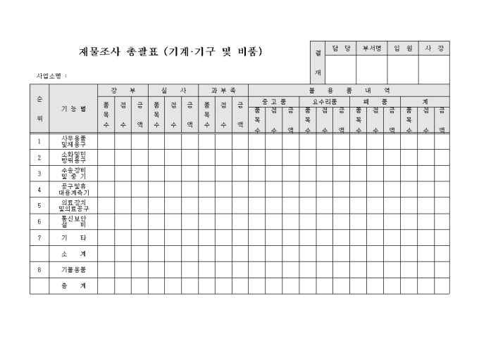 재물조사총괄표(기계,기구,비품)