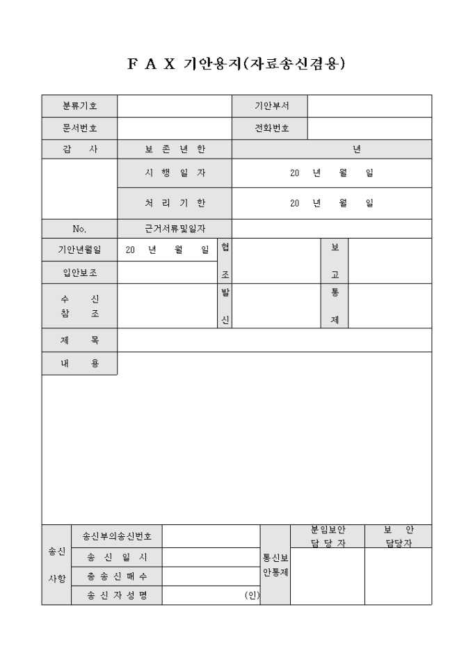 팩스기안용지(자료송신겸용)
