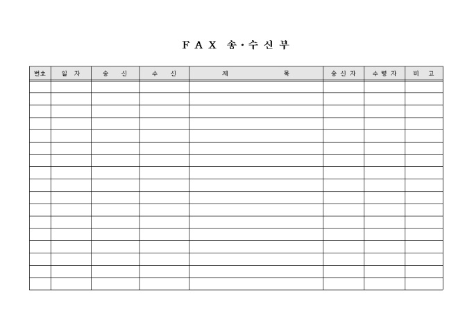 9,000원/월Fax의 송/수신과 제목, 송신자, 수신자 등을 기재 할 수 있는 Fax송수신부 양식입니다.