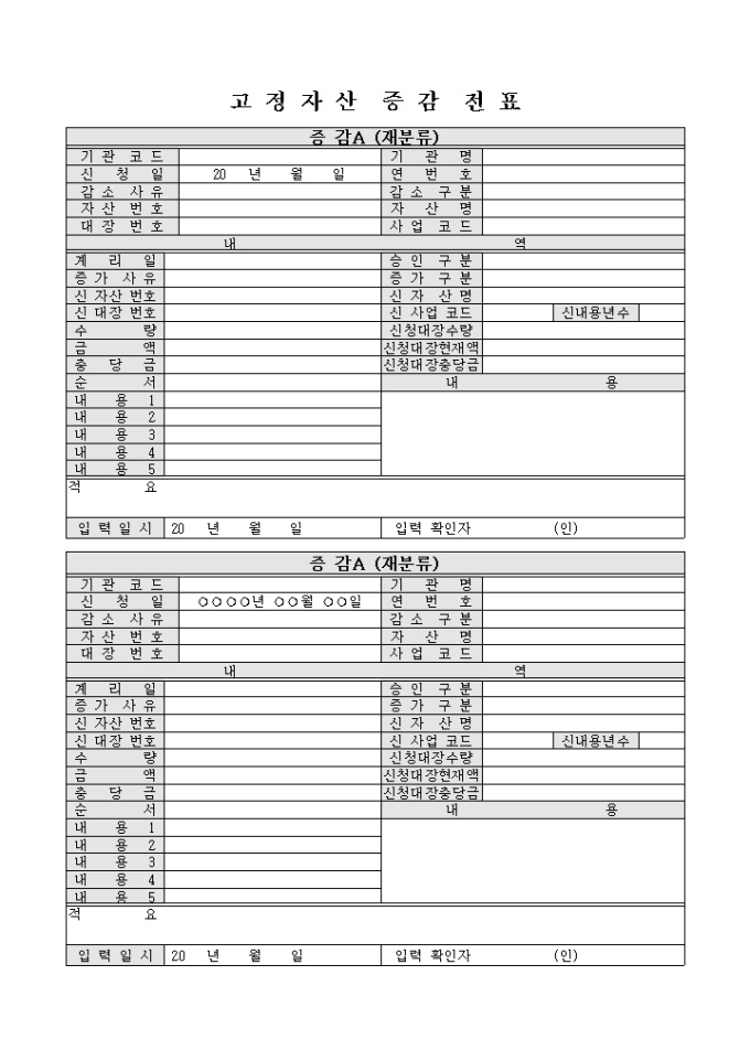 고정자산증감전표(2단구성)