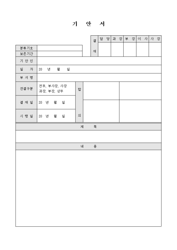 일반적인 기안서 양식입니다.