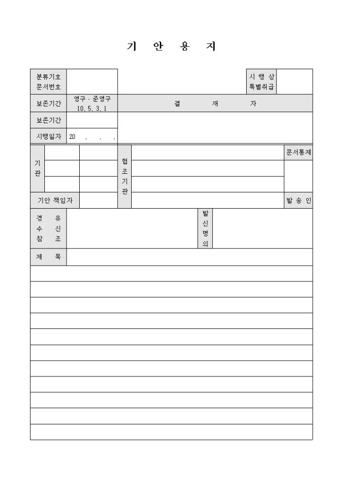 일반적으로 사용할 수 있는 기안용지(3) 양식입니다.