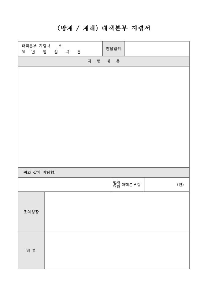 대책본부지령서(방재/재해)