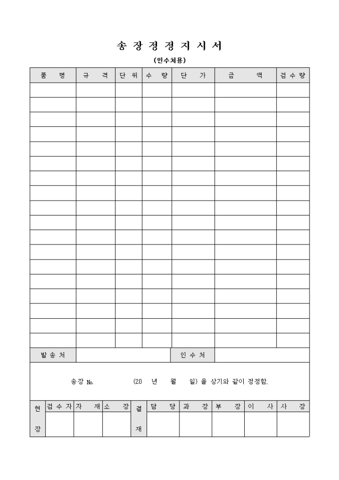 9,000원/월품명, 규격, 단위, 수량, 단가, 금액, 검수량을 기록하는 송장정정지시서입니다.
