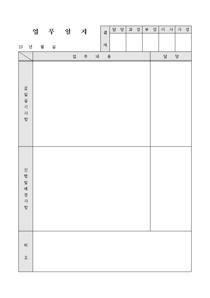 9,000원/월금일실시사항, 진행및예정사항 등의 업무내용과 결제란으로 구성된 업무일지입니다.