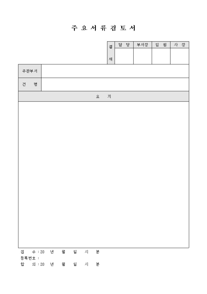 서류 검토 내역을 정리하여 기록하는 양식입니다.