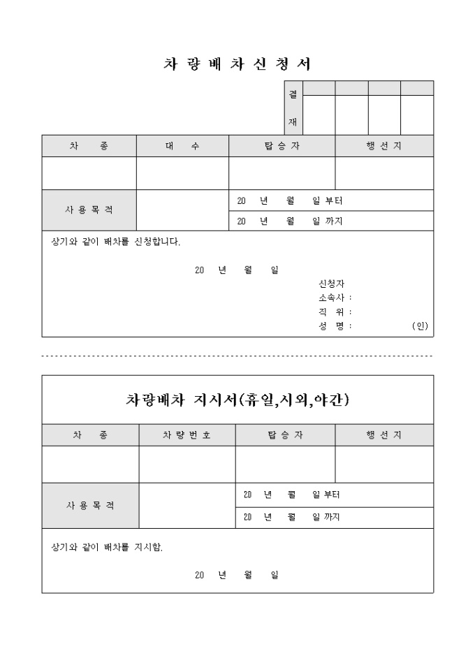 9,000원/월차량을 배차하기위해 필요한 차량배차 신청서입니다.