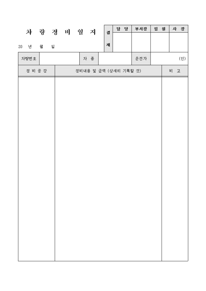 9,000원/월차량정비일지입니다. 정비차량의 상태와 정비내역을 기록할수 있는 문서입니다.