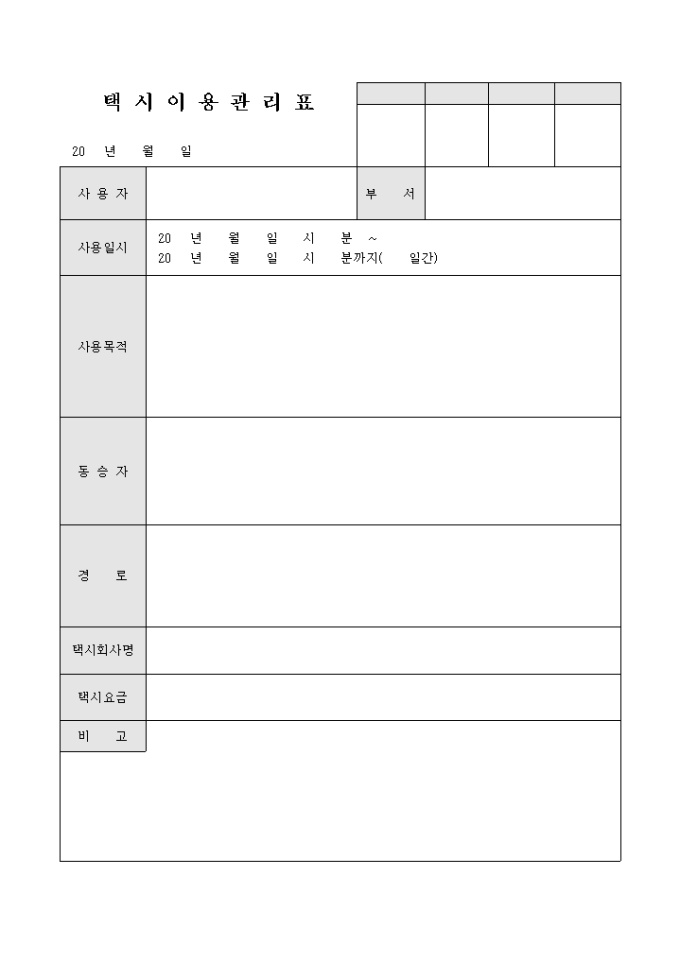 택시이용관리표