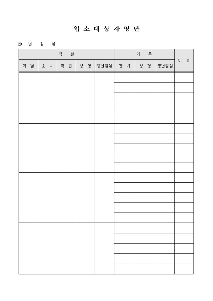9,000원/월입소대상자의 명단을 기록할때 사용합니다. 입소할 직원과 가족등을 기록할수 있습니다.