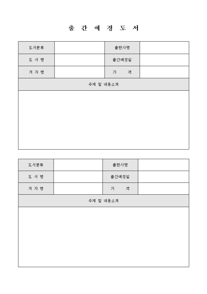 출간예정도서내역표(주제 및 내용소개)
