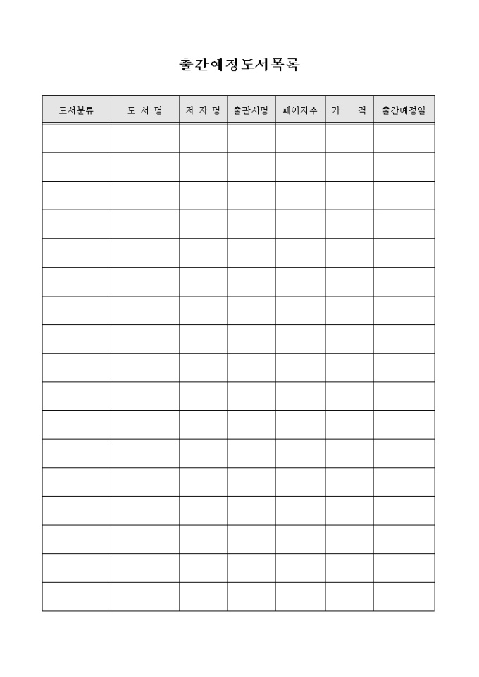 9,000원/월출간예정인 도서의 목록을 기록하기 위한 문서입니다. 도서명과 가격, 출간예정일등으로 구성되어 있습니다.