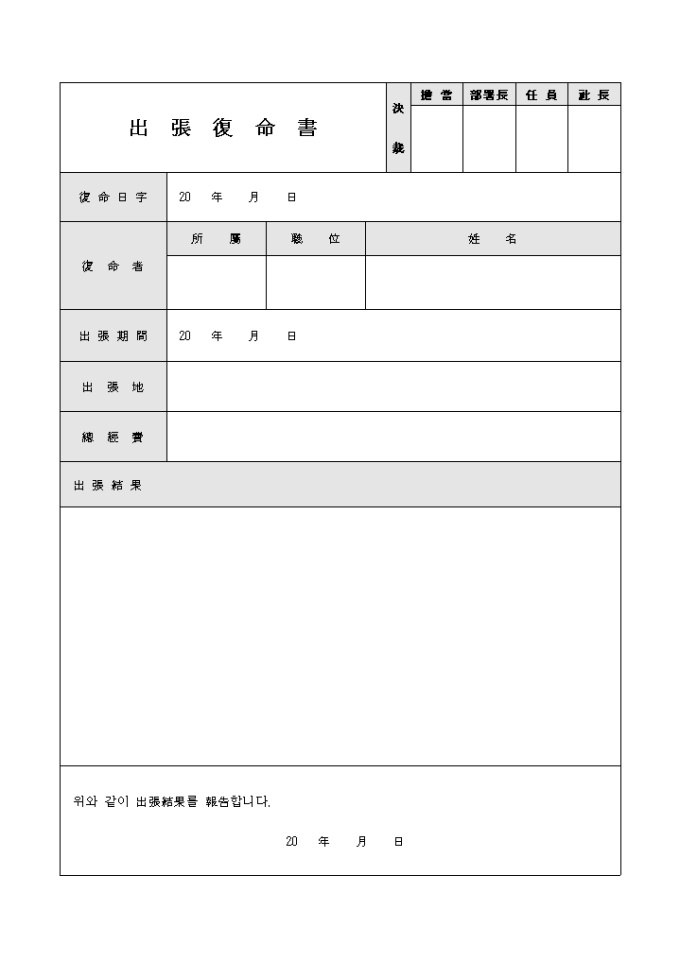 출장복명서입니다. 한자로 구성되어 있는 결재 문서입니다.