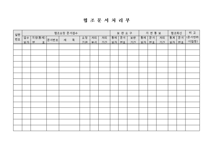 9,000원/월협조문서처리부입니다. 협조요청 문서 내역, 보관요구등으로 구성되어 있습니다.