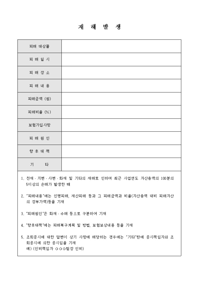 9,000원/월재해발생시 피해대상물과 장소, 피해내용등을 기록한 문서입니다.