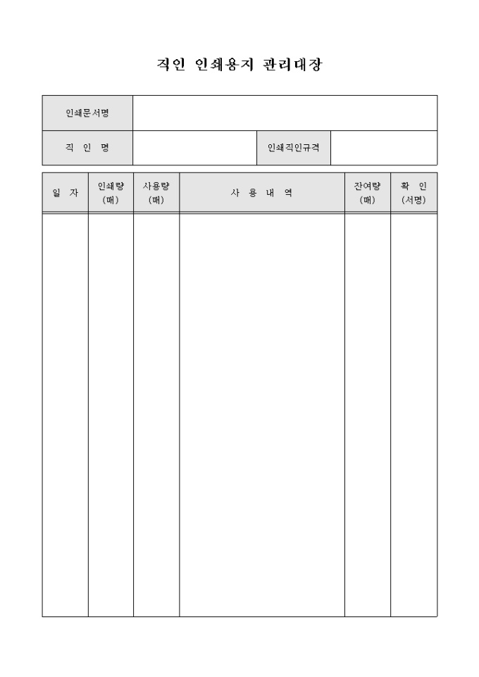 9,000원/월직인인쇄용지관리대장입니다. 직인인쇄내역을 기록하기위해 사용됩니다.