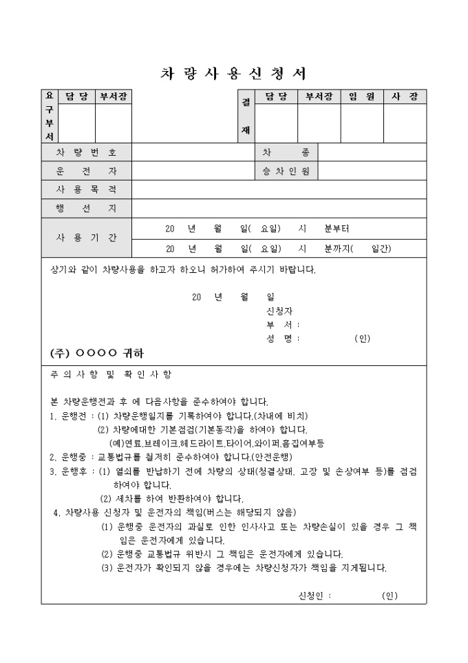 차량이용신청서