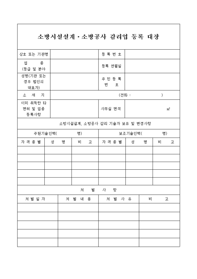 9,000원/월소방시설설계,소방공사감리업등록대장 입니다.