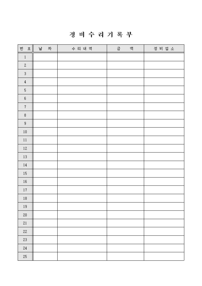 차량정비 수리기록부(정비업소기록)