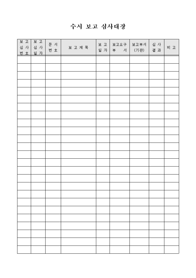 9,000원/월업무진행에 있어 수시보고된 내용의 심사결과를 작성할수 있는 보고심사대장입니다.