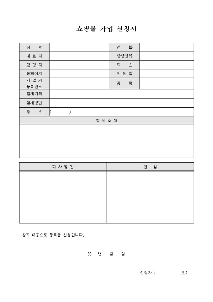 쇼핑몰 가입신청서