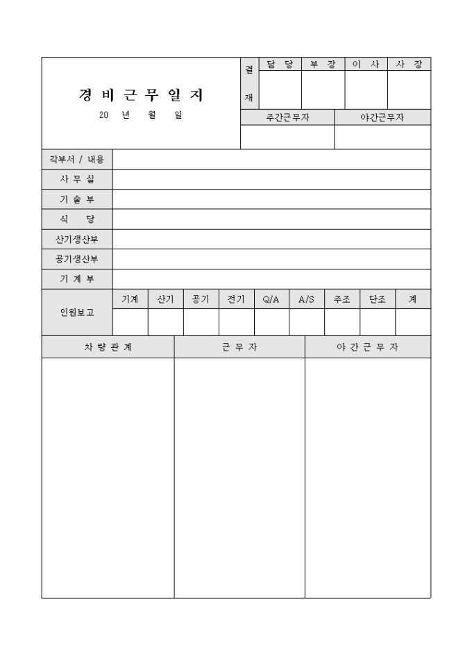 9,000원/월경비근무상태를 체크하는 양식으로 다양한 항목들로 구성되어 있습니다.