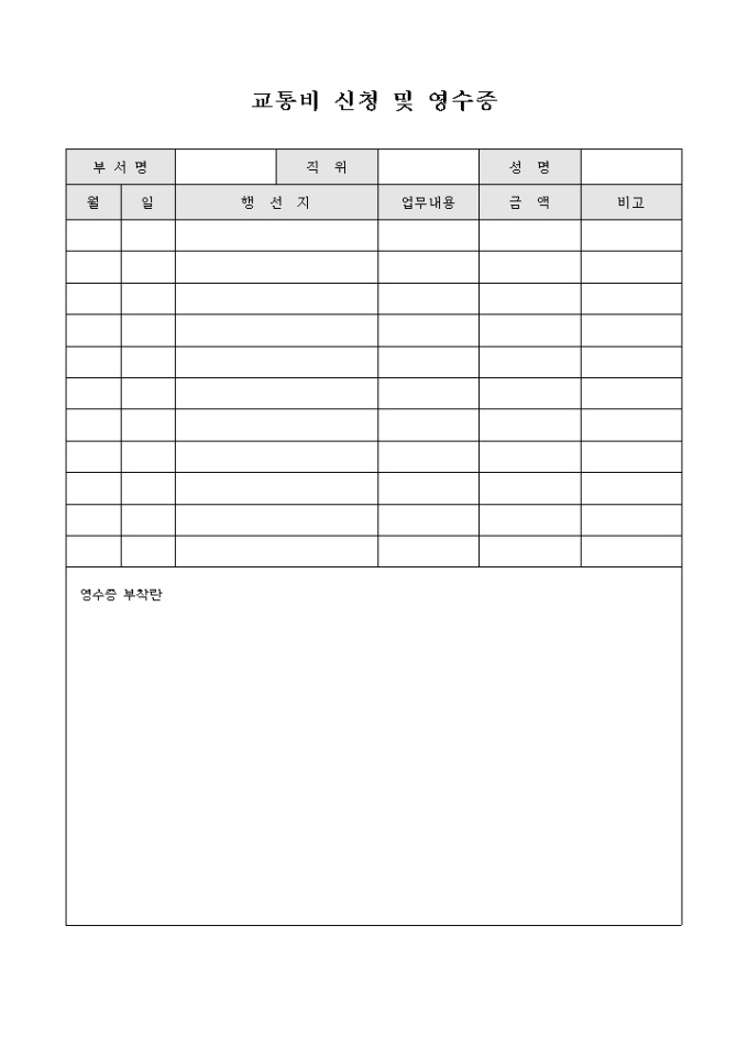 9,000원/월교통비를 신청, 지급할 수 있게 만든 영수증으로 행선지, 금액, 업무내용등을 기입하셔서 사용하시면 됩니다.